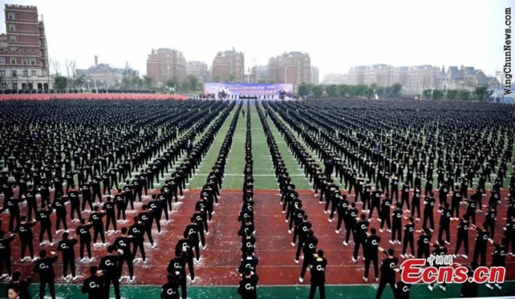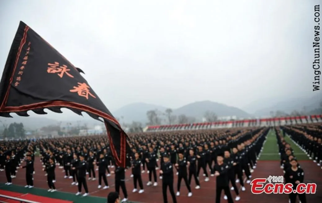 10.012 alunos da Sichuan Southwest College of Civil Aviation em Chengdu, província de Sichuan, China participaram da manifestação. A escola da aviação civil oferecido curso de Wing Chun em cooperação com mestres da arte marcial para melhor preparar os alunos para as emergências de segurança em viagens aéreas.