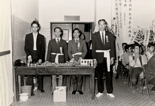 Na foto acima, vemos Grão-Mestre Moy Yat e seus irmãos Kung Fu, na recepção do funeral de Ip Man, onde usavam vestimentas pretas com uma faixa branca. Representando que eram discípulos de primeira geração, enquanto os discípulos de 2º e 3º usavam braçadeiras pretas.